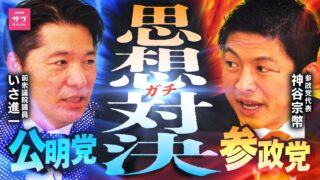 【神谷宗幣 vs 公明党・いさ進一】 反グローバリズム、ワクチン、核兵器、積極財政…あらゆるトピックを徹底討論!!◎ 「グローバリズム」と「反グローバリズム」 日本を救うのは…?◎ 日本に核兵器は必要なのか?◎ 消費税ゼロと積極財政は両立で...