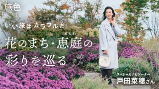 トレンド 戸田菜穂|いい旅はカラフルだ。花のまち・恵庭の彩りを巡る【旅色Movie】 空と陸のアクセスに恵まれ、恵庭岳の裾野が広がる自然環境も豊かな恵庭市。現在は“花のまち”として知られ、道内屈指の花苗の産地でもあります。一年を通してカラフルな花々に彩られた恵庭市を俳優の戸田菜穂さんと共に旅します。そこには、花、グルメ、観光... 2025.11.25 トレンド