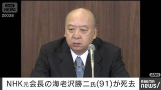 NHK元会長の海老沢勝二氏(91歳)が死去 誤えん性肺炎のため(2025年10月20日)